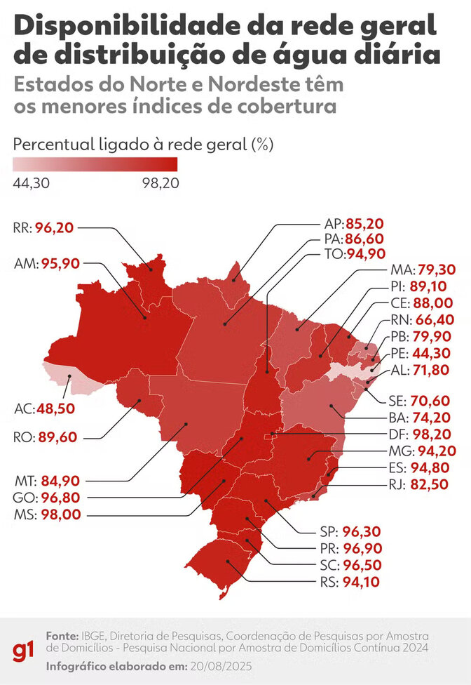 Por outro lado, a região Sul tem a maior cobertura (95,8%), embora a maior incidência seja no Distrito Federal (98,2%).